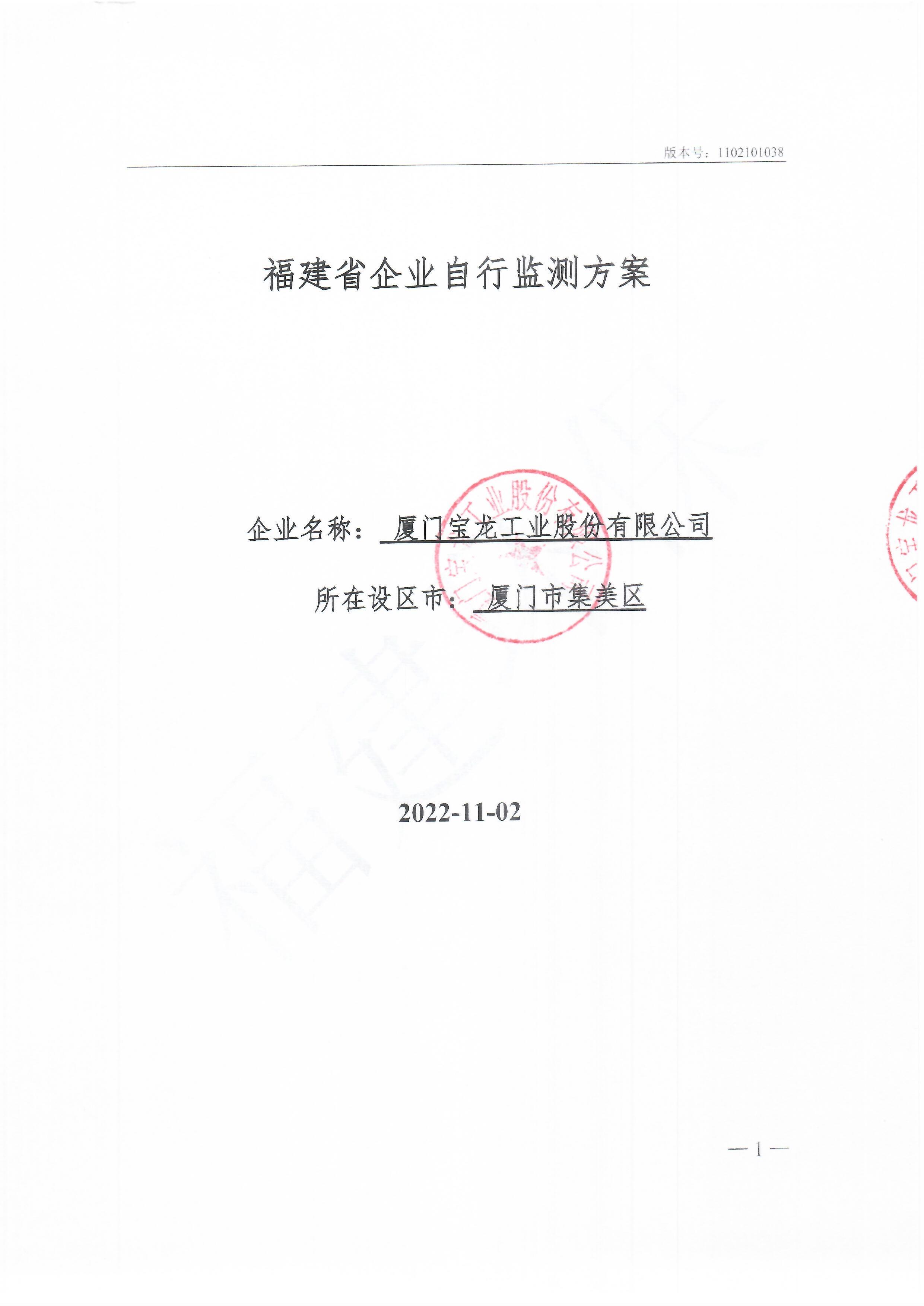 廈門(mén)寶龍工業(yè)股份有限公司企業(yè)自行監(jiān)測(cè)方案